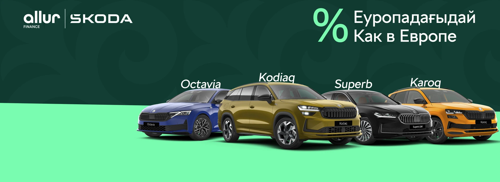 Škoda сізге тиімді және ыңғайлы сатып алу шарттарын ұсынады: Kodiaq, Superb, Karoq және Octavia модельдері ең төменгі пайыздық мөлшерлемемен дилерлік орталықтарда сатылымда бар!
